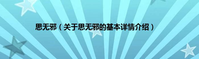 本文关于思无邪的基本详情介绍就讲解完毕,希望对大家有所帮助。