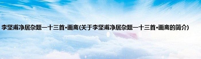 李坚甫净居杂题一十三首·画斋(关于李坚甫净居杂题一十三首·画斋的简介)