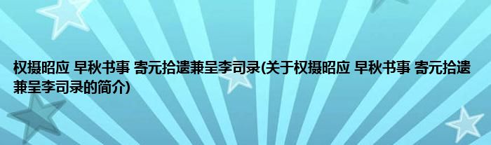 权摄昭应 早秋书事 寄元拾遗兼呈李司录(关于权摄昭应 早秋书事 寄元拾遗兼呈李司录的简介)