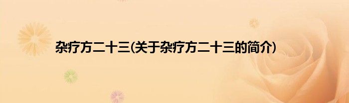 大家好,杂疗方二十三,关于杂疗方二十三的简介很多人还不知道,现在让我们一起来看看吧!
