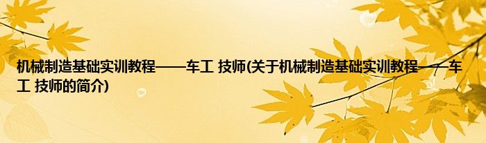 本文关于机械制造基础实训教程——车工 技师的简介就讲解完毕,希望对大家有所帮助。