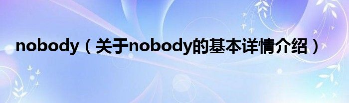 本文关于nobody的基本详情介绍就讲解完毕,希望对大家有所帮助。