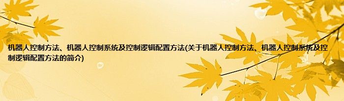 本文关于机器人控制方法、机器人控制系统及控制逻辑配置方法的简介就讲解完毕,希望对大家有所帮助。