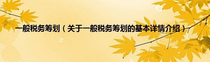 一般税务筹划(关于一般税务筹划的基本详情介绍)