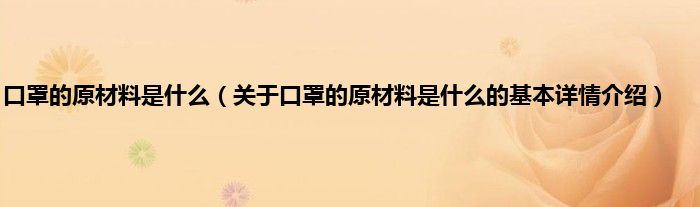 本文关于口罩的原材料是什么的基本详情介绍就讲解完毕,希望对大家有所帮助。