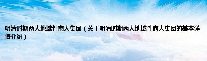 本文关于明清时期两大地域性商人集团的基本详情介绍就讲解完毕,希望对大家有所帮助。