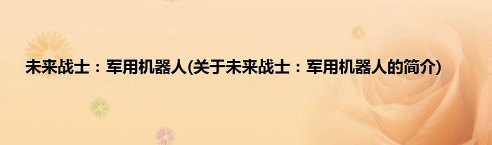 本文关于未来战士:军用机器人的简介就讲解完毕,希望对大家有所帮助。