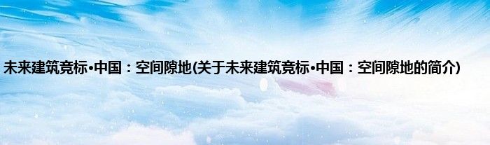 本文关于未来建筑竞标·中国:空间隙地的简介就讲解完毕,希望对大家有所帮助。