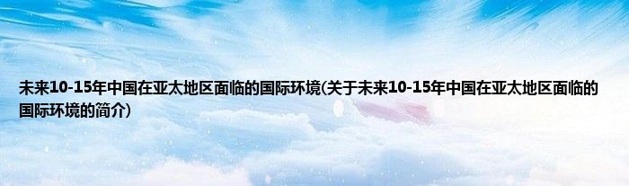 本文关于未来10-15年中国在亚太地区面临的国际环境的简介就讲解完毕,希望对大家有所帮助。