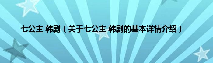 本文关于七公主 韩剧的基本详情介绍就讲解完毕,希望对大家有所帮助。