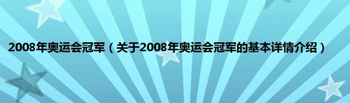本文关于2008年奥运会冠军的基本详情介绍就讲解完毕,希望对大家有所帮助。