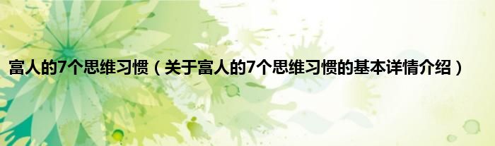 本文关于富人的7个思维习惯的基本详情介绍就讲解完毕,希望对大家有所帮助。