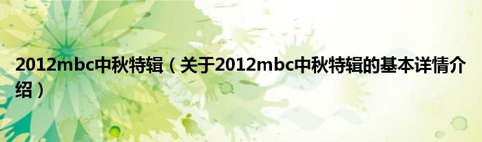 本文关于2012mbc中秋特辑的基本详情介绍就讲解完毕,希望对大家有所帮助。