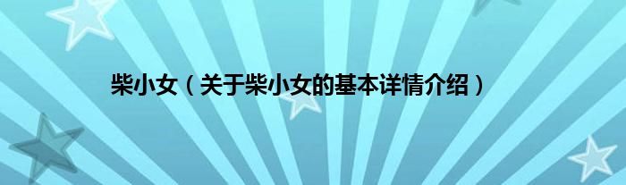 本文关于柴小女的基本详情介绍就讲解完毕,希望对大家有所帮助。