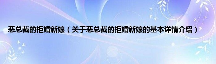 本文关于恶总裁的拒婚新娘的基本详情介绍就讲解完毕,希望对大家有所帮助。