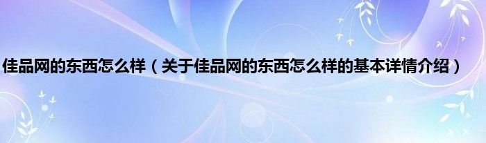 本文关于佳品网的东西怎么样的基本详情介绍就讲解完毕,希望对大家有所帮助。