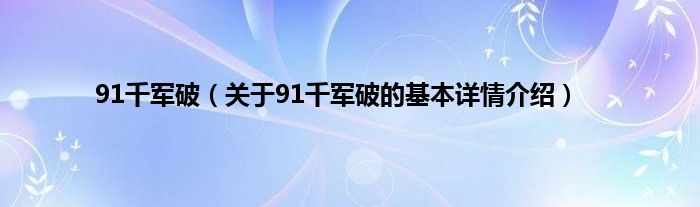 本文关于91千军破的基本详情介绍就讲解完毕,希望对大家有所帮助。