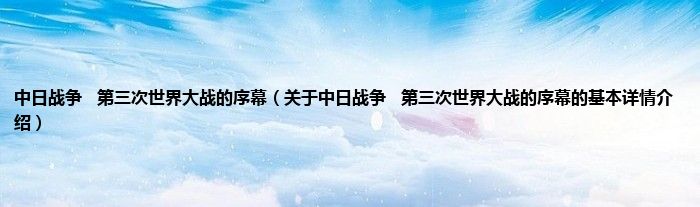 本文关于中日战争 第三次世界大战的序幕的基本详情介绍就讲解完毕,希望对大家有所帮助。
