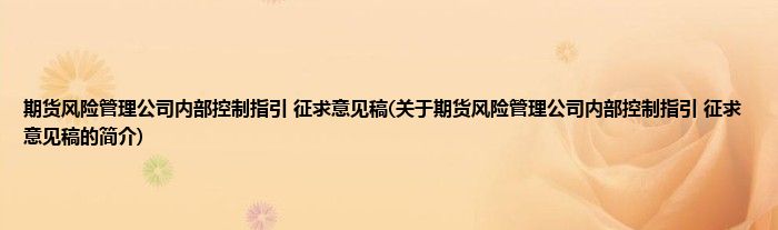 大家好,期货风险管理公司内部控制指引 征求意见稿,关于期货风险管理公司内部控制指引 征求意见稿的简介很多人还不知道,现在让我们一起来看看吧!