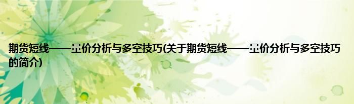 本文关于期货短线——量价分析与多空技巧的简介就讲解完毕,希望对大家有所帮助。