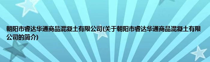 本文关于朝阳市睿达华通商品混凝土有限公司的简介就讲解完毕,希望对大家有所帮助。