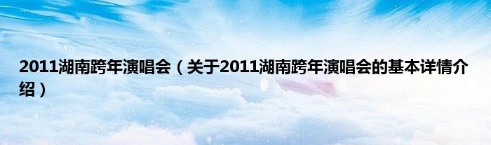 本文关于2011湖南跨年演唱会的基本详情介绍就讲解完毕,希望对大家有所帮助。