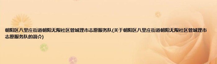 大家好,朝阳区八里庄街道朝阳无限社区管城理市志愿服务队,关于朝阳区八里庄街道朝阳无限社区管城理市志愿服务队的简介很多人还不知道,现在让我们一起来看看吧!