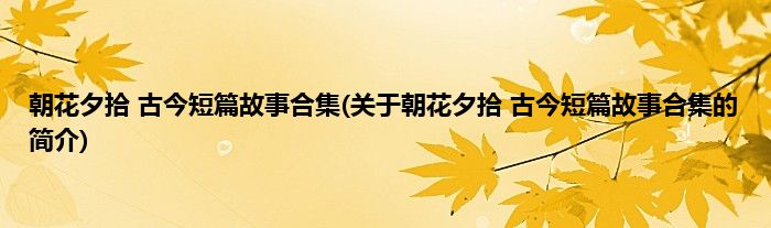 大家好,朝花夕拾 古今短篇故事合集,关于朝花夕拾 古今短篇故事合集的简介很多人还不知道,现在让我们一起来看看吧!