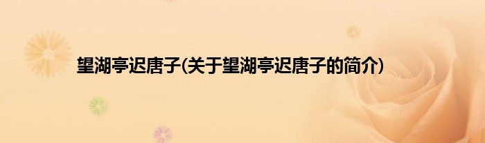 大家好,望湖亭迟唐子,关于望湖亭迟唐子的简介很多人还不知道,现在让我们一起来看看吧!