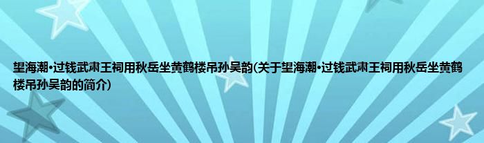本文关于望海潮·过钱武肃王祠用秋岳坐黄鹤楼吊孙吴韵的简介就讲解完毕,希望对大家有所帮助。