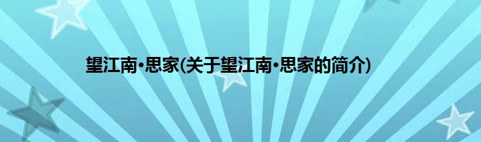 本文关于望江南·思家的简介就讲解完毕,希望对大家有所帮助。
