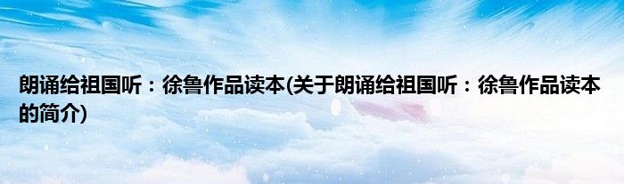 本文关于朗诵给祖国听:徐鲁作品读本的简介就讲解完毕,希望对大家有所帮助。