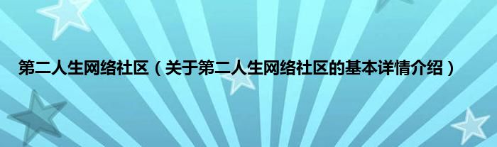 本文关于第二人生网络社区的基本详情介绍就讲解完毕,希望对大家有所帮助。