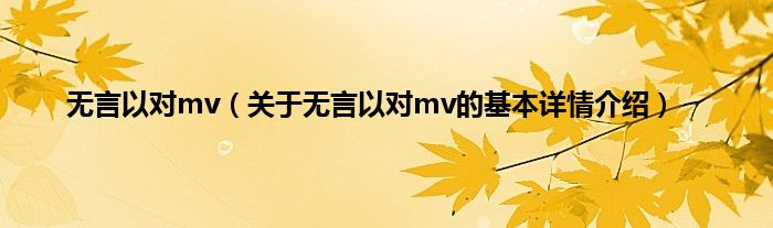 本文关于无言以对mv的基本详情介绍就讲解完毕,希望对大家有所帮助。