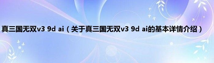 本文关于真三国无双v3 9d ai的基本详情介绍就讲解完毕,希望对大家有所帮助。