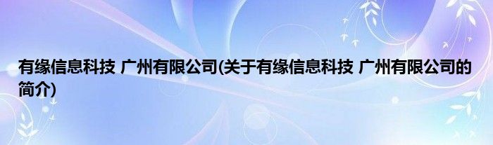 本文关于有缘信息科技 广州有限公司的简介就讲解完毕,希望对大家有所帮助。