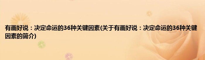 大家好,有画好说:决定命运的36种关键因素,关于有画好说:决定命运的36种关键因素的简介很多人还不知道,现在让我们一起来看看吧!