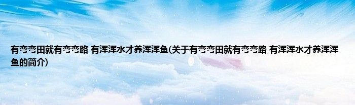 有弯弯田就有弯弯路 有浑浑水才养浑浑鱼(关于有弯弯田就有弯弯路 有浑浑水才养浑浑鱼的简介)