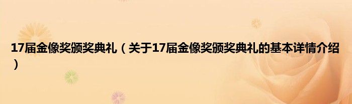 本文关于17届金像奖颁奖典礼的基本详情介绍就讲解完毕,希望对大家有所帮助。