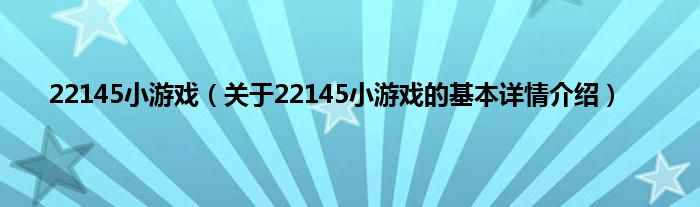 本文关于22145小游戏的基本详情介绍就讲解完毕,希望对大家有所帮助。