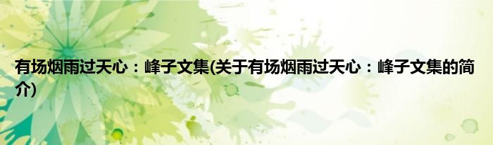 本文关于有场烟雨过天心:峰子文集的简介就讲解完毕,希望对大家有所帮助。