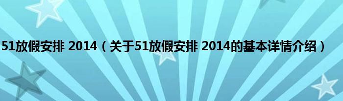 本文关于51放假安排 2014的基本详情介绍就讲解完毕,希望对大家有所帮助。