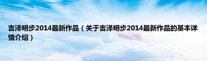 本文关于吉泽明步2014最新作品的基本详情介绍就讲解完毕,希望对大家有所帮助。