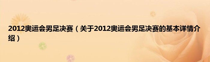 本文关于2012奥运会男足决赛的基本详情介绍就讲解完毕,希望对大家有所帮助。