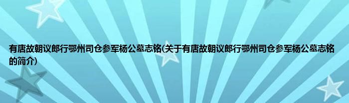 本文关于有唐故朝议郎行鄂州司仓参军杨公墓志铭的简介就讲解完毕,希望对大家有所帮助。