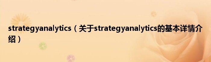 本文关于strategyanalytics的基本详情介绍就讲解完毕,希望对大家有所帮助。