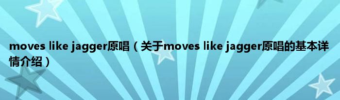 本文关于moves like jagger原唱的基本详情介绍就讲解完毕,希望对大家有所帮助。