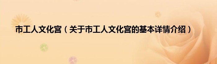 本文关于市工人文化宫的基本详情介绍就讲解完毕,希望对大家有所帮助。