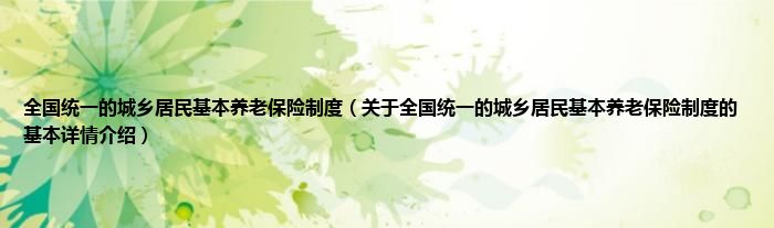 本文关于全国统一的城乡居民基本养老保险制度的基本详情介绍就讲解完毕,希望对大家有所帮助。