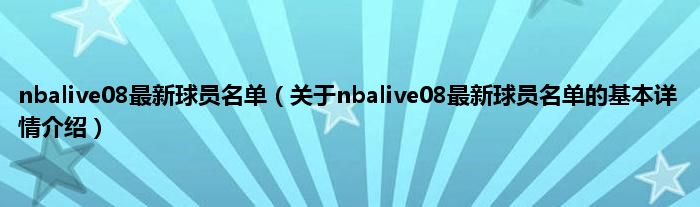 本文关于nbalive08最新球员名单的基本详情介绍就讲解完毕,希望对大家有所帮助。